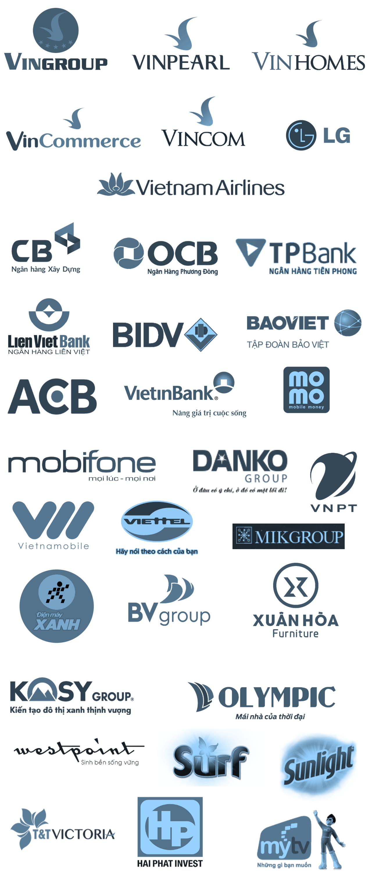 Chúng tôi có cơ hội được hợp tác và làm việc với một trong những đối tác khách hàng tầm cỡ. Và đây là điều tự hào cũng như vinh dự của chúng tôi. Hi vọng rằng trong tương lai gần, công ty của bạn sẽ cho chúng tôi có được cơ hội nối dài danh sách dưới đây